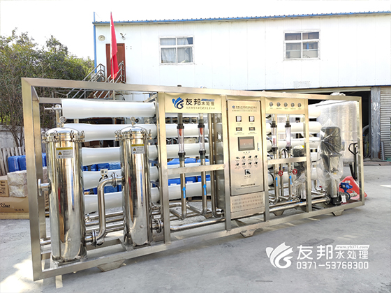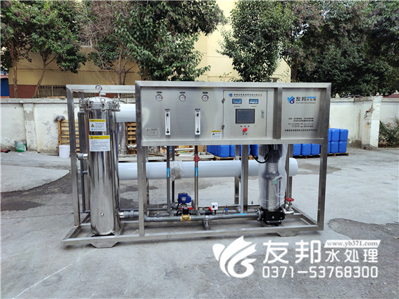 原水-原水加壓泵-多介質過濾器-活性炭過濾器-軟水器-精密過濾器-一級反滲透機-脫氣膜-中間水箱-中間水泵-EDI系統-純化水箱-純水泵-紫外線殺菌器-微孔過濾器-巴氏消毒-用水點