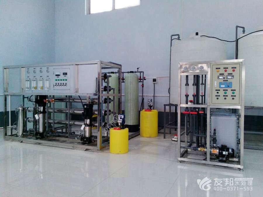 涂裝與電鍍行業用超純水傳統的制備工藝通常是采用離子交換樹脂進行制取,但采用離子交換樹脂通常需要經常性的進行樹脂再生,即耗費物力又浪費人工,河南友邦經過多年實踐,同時結合膜分離技術,常采用反滲透加離子交換系統(或EDI)相結合用來制備超純水,該工藝與傳統工藝相比具有運行成本低的優點(離子交換器的再生周期大大延長),運行可靠。耗材易得的優點。