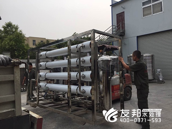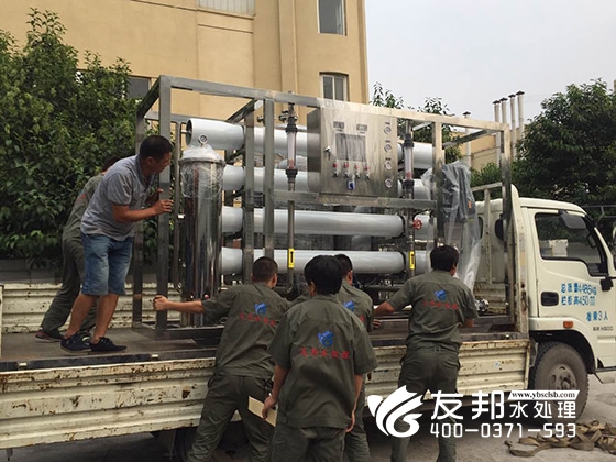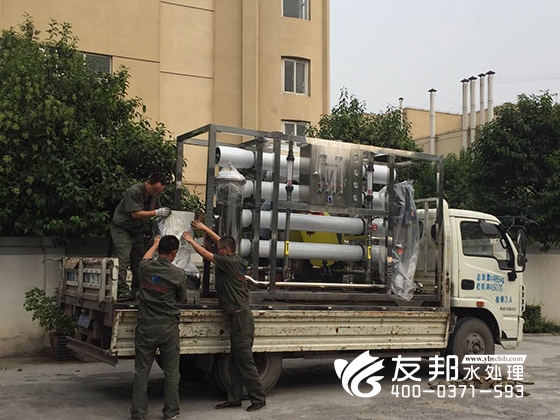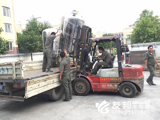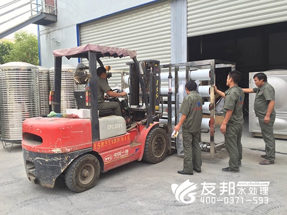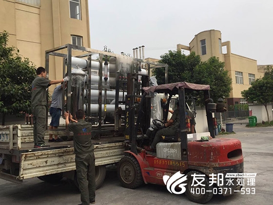 這套型號為YB-CJS-008的水處理設備正在裝車發貨,是發往新鄉某新材料有限公司。鄭州友邦在此次合作中為新鄉某新材料有限公司提供提供的8T/H純水系統,完美的解決了對方在生產工藝用水方面的需求,成功幫助對方實現了新材料的生產。