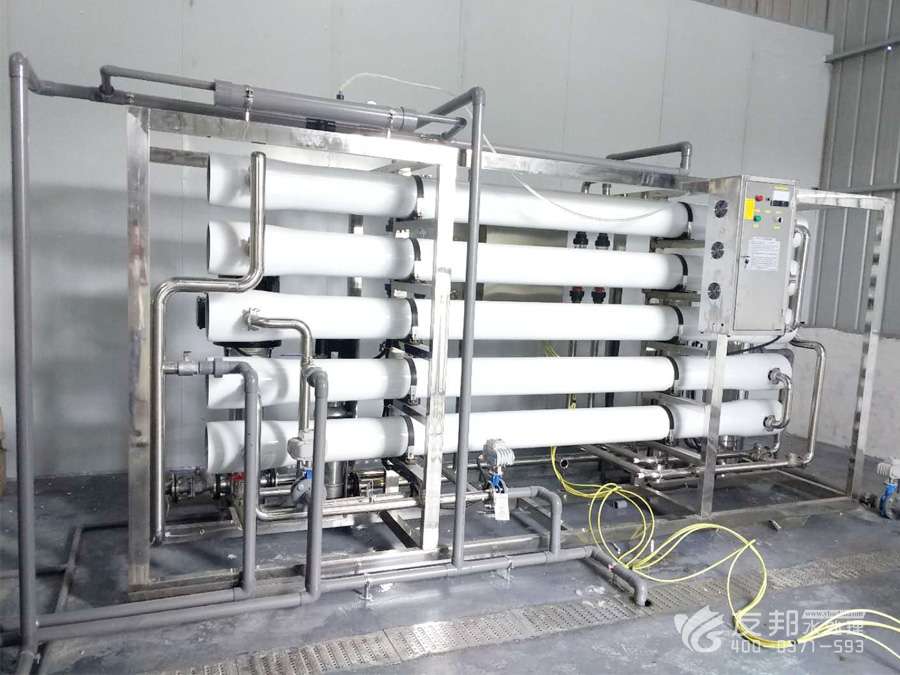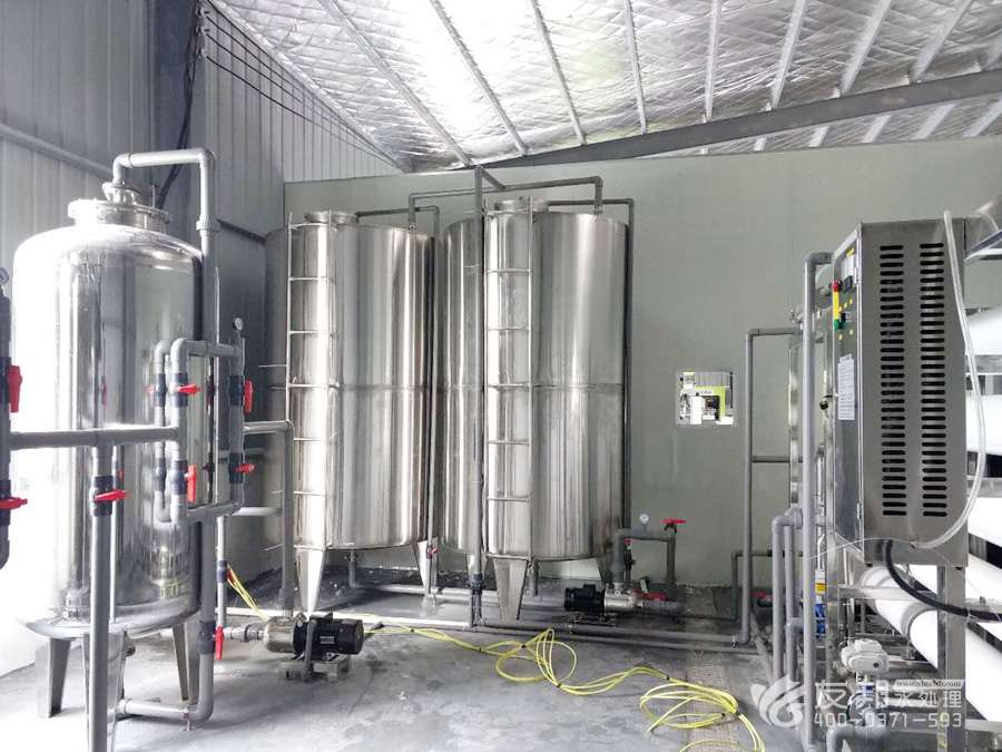 3、原水→原水加壓泵→多介質過濾器→活性炭過濾器→阻垢裝置→精密過濾器→一級反滲透→PH調節→中間水箱→二級反滲透→中間水箱→中間水泵→EDI系統→純化水箱→純水泵→紫外線殺菌器→微孔過濾器→用水點