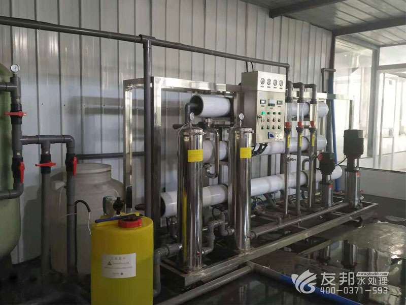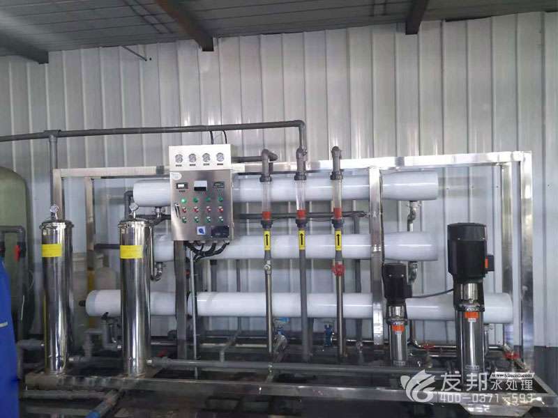 原水→原水箱→原水泵→石英砂過濾器→活性炭過濾器→軟水處理器(添加阻垢劑裝置)→精密過濾器→高壓泵→一級(jí)反滲透(RO)裝置→ 二級(jí)反滲透(RO)裝置→用水點(diǎn)